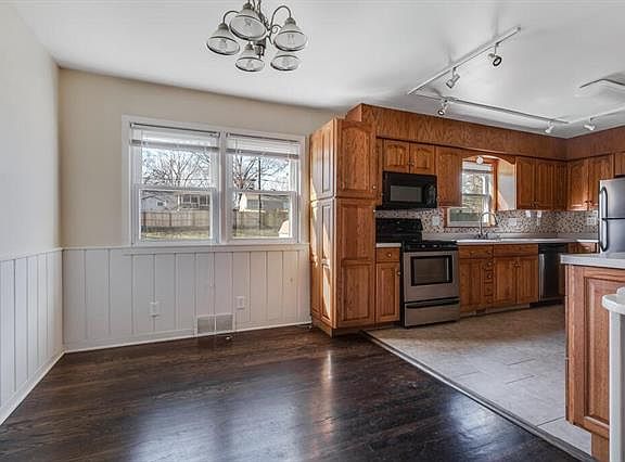 UPDATED RANCH in North KC. Eat-in kitchen with updated cabinets and appliances. Large living room with cozy fireplace. Three bedrooms off to the side offer plenty of living space. Each includes ceiling fans and plenty of windows. Master has private half bath. Full basement with partially finished area. Oversized two car garage with plenty of storage shelves. Large fully fenced yard with shed. Newer roof, HVAC, and HW heater. Hardwood floors in living area. North Kansas City school.