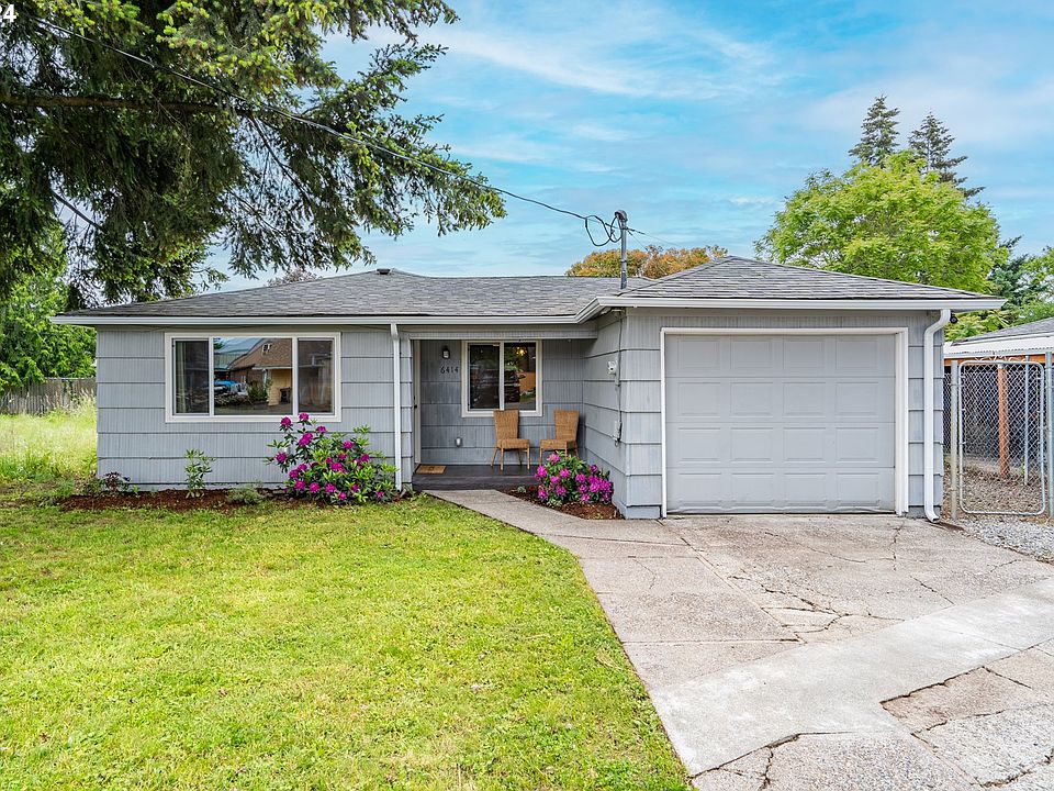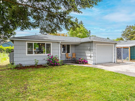 This Southeast Sweetheart Ranch is tucked on a quiet street, yet conveniently located with easy access to all the dining and food carts near Woodstock, shopping near 82nd, the recently reimagined 16-acre Errol Heights Park Project, and quick access to the freeway! A large driveway and attached garage provide plenty of parking, and the spacious living room stays cozy and well-lit with a gas fireplace. Hardwood floors flow throughout the main living space, and the kitchen has granite countertops, stainless appliances, and a charming dining nook that overlooks the front yard. The primary bedroom has a full ensuite bathroom, while two additional bedrooms and a second full bath provide ample living space. The tranquil backyard has a paved patio area and a path that takes you to the private fire pit- flanked by fresh lavender, wildflowers, four kinds of berries, built-in posts for a hammock, and raised garden beds. Upgrades include brand-new gutters, newer vinyl windows, and central AC for those hot summer days that are right around the corner! [Home Energy Score = 7. HES Report at https://rpt.greenbuildingregistry.com/hes/OR10228693]