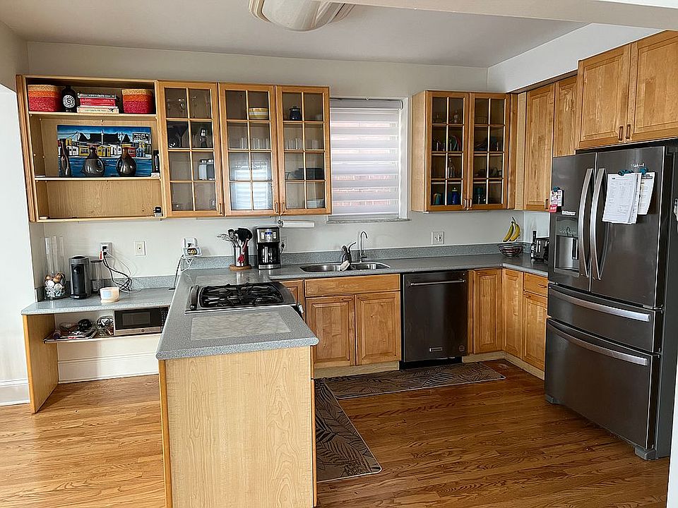 2 story with 3300 sq ft, 4 bed 3 bath, breakfast area, kitchen with stainless appliances, living area with gas fireplace off kithen, dining room, another living area, bedroom for guest or in-lay and bathroom on first level. Second level has 3 bedroom 2 bath, open living area that lead to balcony, washer/dryer and an extension room that function as an office. 2 car garage, fenced backyard, new heating system replaced within a year.