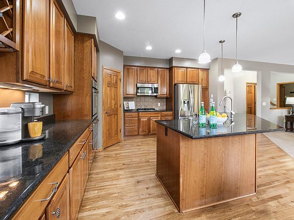 Welcome to this remarkable 5 bedroom, 5 bathroom home in Maple Grove located in Wayzata School District! This light and bright home features a large kitchen with stylish tile backsplash, granite countertops, breakfast bar seating and plenty of cabinet storage space! The open-concept kitchen area and family room and offers tons of natural light and sliding glass door access to the newly updated deck. The main level is complete with an office, formal living and dining room. Four large bedrooms on the upper level each with convenient access to a full bathroom. The primary suite has its own private bathroom with a walk-in closet. You will love the lower level walkout complete with an additional family room, wet bar, gym, bathroom and two additional storage rooms! Step outside and enjoy the beautiful backyard lined with trees. All new carpeting throughout and refinished hardwood floors. Located near restaurants and shopping with easy access to Highway 55 and 494.