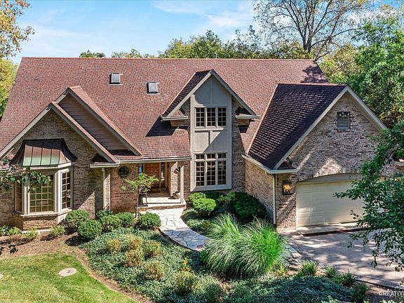 Welcome home to 6414 Vermont Trail. Perfectly placed on 5 wooded acres with spring fed pond in highly sought-after Covered Bridge Trails, this magnificent and completely custom-built Crystal Lake estate home with 4 car garage and full finished walk out basement will have you in awe. The curb appeal of this home's traditional and sophisticated architecture is accentuated with its brick and cedar facade and its many gables and beautiful windows. Rich in natural materials, the interior has a fresh, modern, and open floor plan. The picturesque setting is on full display with walls of windows and soaring-high cathedral ceilings. With its spacious layout, the first floor provides a gourmet kitchen with breakfast nook, formal dining room, home office, beautiful living area with floor to ceiling views, skylights and a lovely 1st floor Master suite with large private bathroom. Gather with loved ones around either of the 2 cozy fireplaces or step out to the large wrap-around deck and large fully screened sunroom to soak in the tranquil and extremely private setting. Upstairs, you'll find 2 additional large bedrooms with double closets and a full bath. The fully finished walk-out basement is bright and airy. Perfect for multi-generational living, this level has its own bedroom with full bathroom, family room with fireplace, 2nd kitchen, and its own 2 car lower-level garage (total of 4 garage spaces for the home). Truly a private oasis, with walking trails to its own 1/2 acre spring-fed pond, mature landscape, and wooded acreage but still situated in close proximity to coveted Prairie Ridge High School, Veteran's Acres Park, and the Metra Station in downtown Crystal Lake for easy commutes. And so much more!