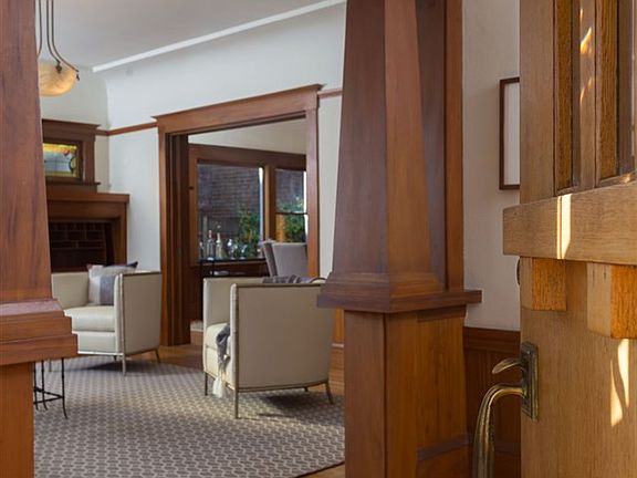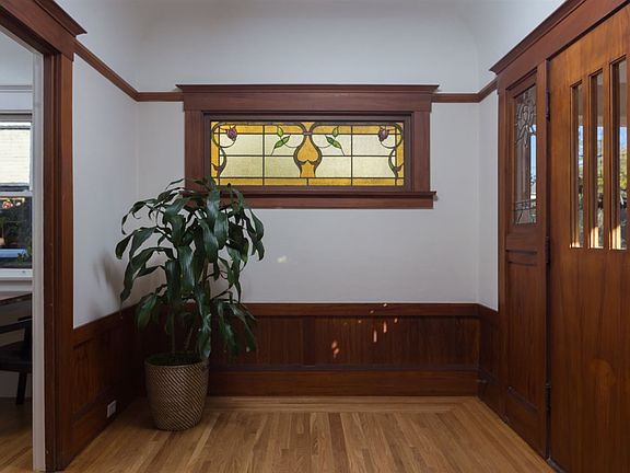 A classic Craftsman on a prime Rockridge block! The interior of this 3-bedroom, 1-bath, split-level home has pristine original details plus a newly updated kitchen and bath, fresh paint throughout and beautiful wood floors. It boasts a big back yard and is in an excellent location, just a block from Wood Tavern! FEATURES INCLUDE -Large stone front porch and gracious entry with lovely leaded glass windows -Living room features stone fireplace and handsome built-ins, including fold-down desk -Plentiful Craftsman details throughout, including coved ceilings, leaded glass, pocket doors, built-ins, plate rails in the dining room, and many original light fixtures -Eat-in kitchen with quartz counters, ample counter space, and new stainless-steel appliances -Big, newly tiled bathroom with double vanity, vintage bathtub, separate stall shower and quartz counters -3 bedrooms, including one that is a few steps up from the main level, with sunroom windows and a Murphy bed in closet -Extra ¼ bath and laundry hookups in basement -Big back yard with formal paths, raised beds, fruit trees and patio -Long driveway and detached garage provide ample parking space and storage -Approximately 1 mile to UC Berkeley campus and close to freeways, Rockridge BART, and SF Transbay Bus -Nearby to primo European-style food shopping on College Avenue, including new Safeway complex, Cole Coffee, Ver Brugge Meats, La Farine French Bakery, fresh produce and flower market