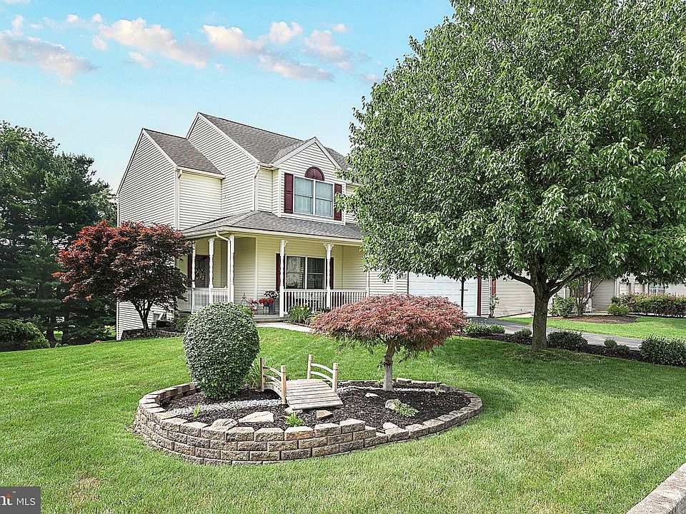 Welcome to this lovingly-maintained colonial-style home in the sought-after Kings Crossing neighborhood of Harrisburg. This stunning residence offers four bedrooms and two and a half bathrooms. From the curb, you'll immediately notice the pride of ownership. The mature landscaping creates a picture-perfect setting, showcasing the care and attention given to this home over the years. As you step inside, you'll be greeted by a warm and inviting atmosphere, a testament to the love and attention poured into this home. The heart of this home is the kitchen, which features granite countertops, abundant cabinetry, and a peninsula that serves as a hub for culinary creations and socializing. Perfect for a seasoned chef or a casual cook. Upstairs, you'll find the four generously sized bedrooms. The master suite stands out with its generous proportions and a private en-suite bathroom that includes a luxurious custom shower. The remaining bedrooms are perfect for family members, guests, or can be utilized as a home office or hobby room. The finished walk-out basement is thoughtfully designed and provides plenty of natural-light, making it an inviting area for recreation, entertainment, or even separate living quarters. Step outside and discover an array of delightful features to enjoy! At the front of the home, the inviting wrap-around porch offers the perfect spot to unwind while listening to the soothing sounds of the cascading pond. If you prefer privacy, head to the back where the raised deck with an awning for shade, allows you to relax comfortably. Whether you choose the front or back, the outdoor spaces of this home provide a serene and picturesque setting. From shopping centers and restaurants to parks (right across the street) and recreational facilities, everything you need is just a short distance away. Don't miss your opportunity to make this home your own. Schedule a showing today!