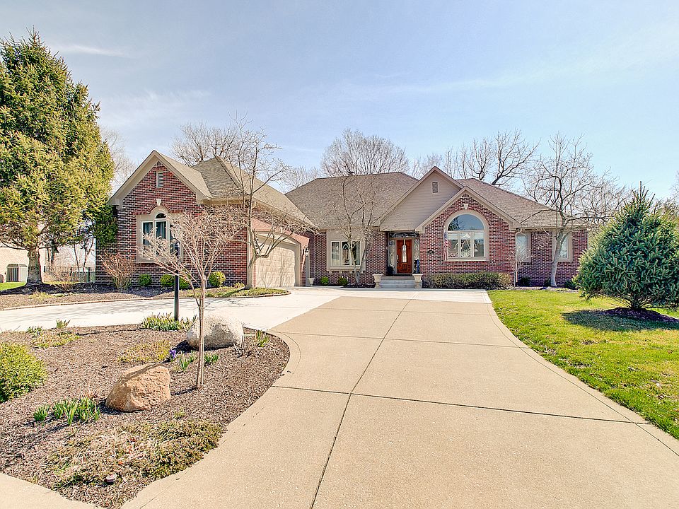 Brick ranch w/finished basement in popular Forrest Commons. Minutes from downtown Indy. 3/4 beds & 3.5 baths. Main level office with vaulted ceilings and walk-in closet; can be a 4th bed, great room w/vaulted ceilings and large palladian window for natural light, hardwood flooring, 2-sided fireplace, large main level laundry, master bath w/dual vanities, heated floors, large walk-in closet, whirlpool tub w/separate shower, MBR w/french doors leading to the deck. Granite in kitchen w/SS appliances including double oven & wine bar, sunroom off kitchen. Basement has a bedroom, bathroom, exercise room, and a family room. Fenced back yard featuring a huge deck, built in seating and outdoor speakers. Newer roof, irrigation system and MUCH MORE!!