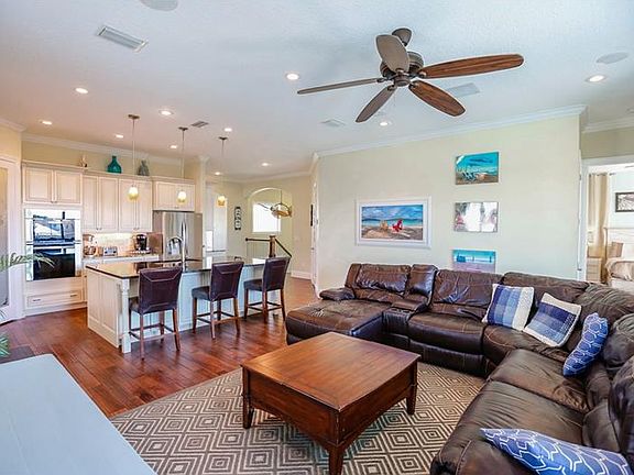 A PIECE OF PARADISE! Don''t miss out on this Exquisite Bimini Bay Key West style 4 Bedroom, 3 Bath WATERFRONT home. As you drive up to the home you will feel like you are on a tropical island with the GORGEOUS palms, coconut trees & the STUNNING metal roof that adds even more to the CURB APPEAL! This CUSTOM home is loaded with UPGRADES & HIGH END FINISHES such as scraped wood flooring, spiral staircase, recessed lighting, oversized ceiling fans, upgraded dimmer switches, upgraded doors, crown molding, 7" baseboards & plantation shutters throughout- WOW! There are 10 foot ceilings & 8 foot doors that add even more dramatic touches to the home. The BREATHTAKING kitchen features chiseled edge granite island, top tier spice racks, stainless steel appliances, gas double oven - convection and microwave, & travertine backsplash. There is an office with built in bookshelves that can easily be converted into a 4th bedroom. There is even a 2 person chromotherapy infrared sauna nestled under the staircase. The home has surround sound & is prewired for whole house audio. The luxurious master suite offers walk in closets with custom build-ins, laundry chute, Kohler travertine rain shower with granite seat, his and hers sinks with vanity, built in jetted/heated tub, and toilet closet. Make this your oasis with your own PERSONAL - 10'' x 50'' PRIVATE BEACH with full dock, lift and floating dock! Year round enjoyment in the solar heated pool keep warm soaking in the gas heated spa. Bimini Bay is an incredible community offering its homeowners gated security and a fabulous community pool and gathering space. Great location near restaurants, shopping, beaches and 20 minutes to downtown Tampa.