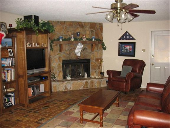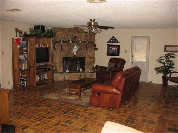 This spacious home offers lots of potential with over 2200 sf of living space. The home has 4 beds and 2 baths, a huge den/family room with stone gas fireplace and brick floors. A spacious kitchen with granite counters, breakfast area and bar (refrigerator to remain). Just off the kitchen is a separate dining room and office/bonus room. This home has two separate attached carports, covered patio area, a detached 2 car garage with additional stora ge and is situated on a huge fenced lot. Motivated seller. Call to schedule your viewing today.