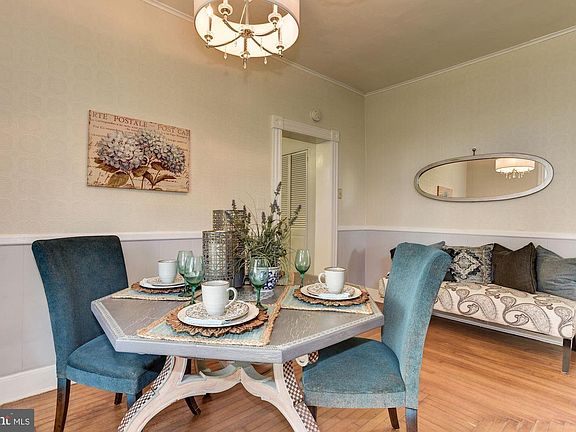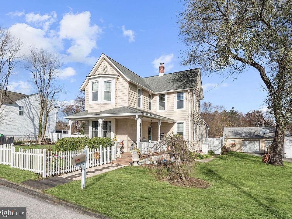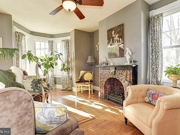 Spectacular Victorian home with detailed hardwood floors, magnificent bow windows, and design inspired features throughout! Light filled living room highlighted with a striking fireplace; Dining room with inlayed hardwood floors, classic moldings, and exquisite embossed wallpaper; Eat-in kitchen with sleek stainless steel appliances, display cabinetry, and decorative backsplash; Family room with direct access to the outdoor oasis and pool; Primary bedroom with barn track door and en-suite full bath with glass enclosed shower and stained glass window; Powder room and laundry complete the main level; Travel upstairs to find three additional spacious bedrooms and full bath; Recent Updates: Siding, main level layout, kitchen, family room, bathrooms, primary bedroom, and more!