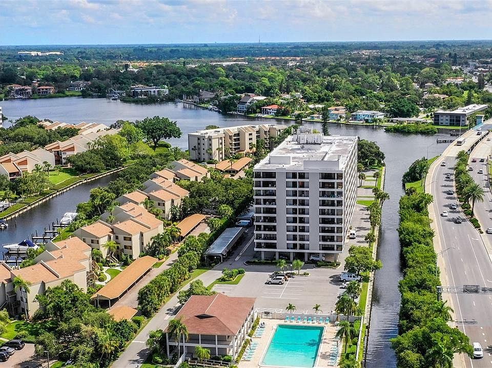 It doesn’t get much better than this! Whether as your personal residence or an investment opportunity, this two-bedroom, two-bath condominium boasting breathtaking views of Sarasota Bay and the Gulf of Mexico is a gem. Situated in a prime location, this property offers not only a stunning coastal escape but also great rental potential. The condominium features a spacious and inviting layout, perfect for accommodating guests seeking a memorable vacation experience. The open living area, filled with natural light, provides a comfortable space for relaxation and entertainment. The well-appointed kitchen is equipped with modern appliances, ensuring convenience for residents and renters. Each bedroom with its own bathroom offers privacy and comfort for all occupants. The private balcony, where you can savor beautiful vistas of the bay and the Gulf, creates an idyllic setting for relaxation with a morning cup of coffee or an evening glass of wine. Being located in a desirable area, across the street from the beach, close to popular attractions, restaurants and entertainment venues, and with a liberal rental policy, this condominium presents an excellent opportunity for rental income. Super unique is that there is plenty of dock space available on first come, first served basis. Very easy to launch kayaks.