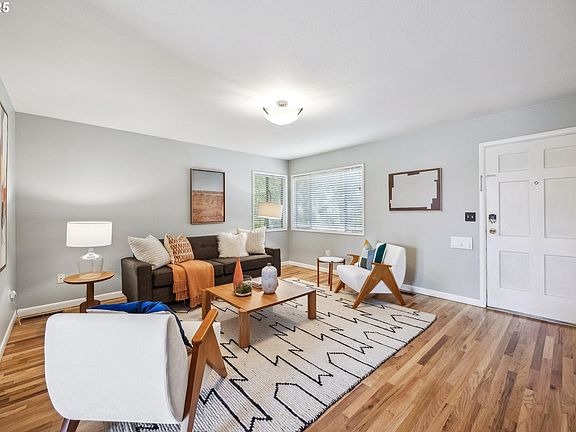 SLEEK UPDATED MID-CENTURY IN THE FANTASTIC NORTH TABOR NEIGHBORHOOD. Stylish and comfortable living in this 1950 classic. Home features large open dining & living rooms with freshly refinished wood floors, updated kitchen with stainless appliances, quartz counters and ample storage, and a luxurious Primary suite with walk-in closet and private bath. Second bedroom is also well sized with large closet. Sliding doors from the Primary suite and dining area lead to a lovely covered outdoor deck overlooking the spacious and private fenced back yard...Perfect for entertaining and everyday living! Single car attached garage has room for laundry, storage and even a car! Excellent location between Hollywood and Montavilla is close to MAX and area shops, restaurants, parks and schools. Minutes to Downtown. [Home Energy Score = 6. HES Report at https://rpt.greenbuildingregistry.com/hes/OR10238217]