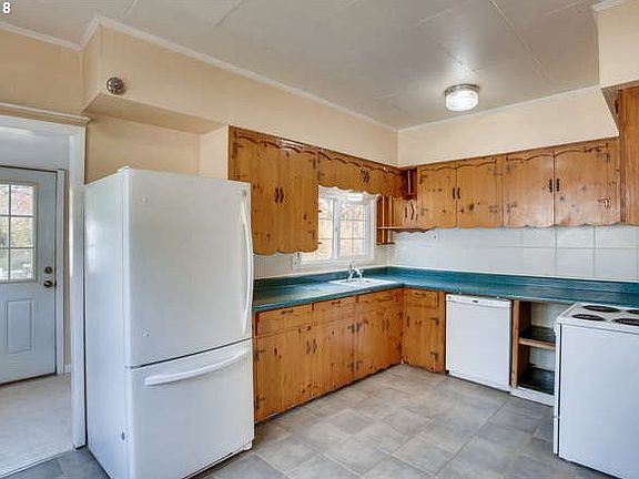 Charming 2 bedroom bungalow where nature is in your backyard. Ready for you to move in with ease big living room with laminate flooring, nice kitchen with dishwasher, stove and refrigerator included. Vinyl windows, covered porch, fenced yard, furnace was installed in about 2011. RV parking, 12x14 shed, cedar siding. Park about three houses down,trails
