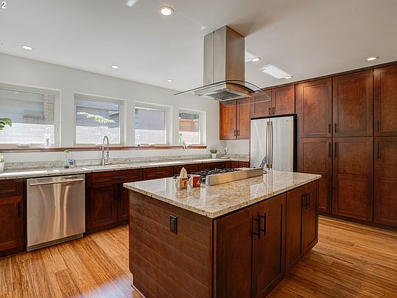 Stylish contemporary has it all - energy efficient, perfect layout, natural light, serene mature gardens, privacy in the city. Bamboo floors throughout, ample granite counters, stainless appliances, double convection ovens, generous cherry cabinets. 2 bedrooms and 2 full baths on main. Lower level with separate entry can be rented, has 1 bedroom, family room, kitchen and bath. Steps to hiking, biking, bus stops, coffee shops, Hillsdale Farmer's Market. Easy access to I-5, OHSU, Lewis & Clark. [Home Energy Score = 10. HES Report at https://rpt.greenbuildingregistry.com/hes/OR10205132]