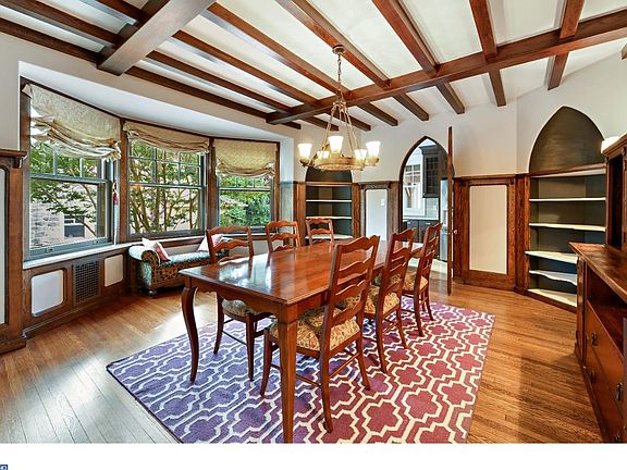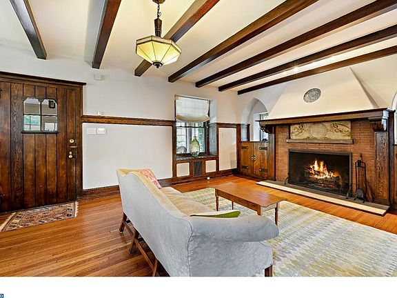 Fantastic Arts & Crafts colonial located in the historical Overbrook Farms section of Philadelphia. This home originally built for the Fleer bubble gum family. Enter into the glass enclosed front porch, great for gathering three seasons of the year.Grand living room welcomes you into the home with natural oak millwork, wood floors and oversized custom wood burning fireplace.The formal dining room with leaded glass windows is entered from both the kitchen and living room and features built in corner cabinets. The updated kitchen with oak cabinetry and Viking cooktop will surely be a chefs dream with plenty of workspace and offers separate butlers pantry. The rear of the home expands the living space with a light filled two story family room with exposed beams and custom staircase. Second floor begins with a large sitting room off the stair landing with wood burning fireplace. Spacious master bedroom as well as hall bedroom and bath.Full finished third floor with three bedrooms and bath. The spacious rear yard with patio offers a private outdoor retreat and is adjacent to the detached garage with finished loft space.Homes such as this do not come to market often, do not miss this opportunity to see this gem of a home!