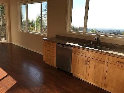 Unique, Owners Unit - modern apartment with views of San Francisco and Marin, 2 Bdrms, 1 Ba, private deck, opens onto garden, open living room, dining room and high end kitchen. Hardwood floors, granite counter tops, stainless steel appliances, dishwasher, microwave, large deck overlooking garden and San Francisco. Montclair 8 blocks from Montclair Village, shopping, stores, and transportation. Close to bike trails and parks with easy freeway access to SF, Hayward and Walnut Creek. Sunny exposure overlooks outside garden. This is a unique opportunity to live in a beautiful 1000 square foot modern apartment. $3300/mo rent, closed attached garage space included Available Immediately Owner pays for trash, sewer and water tenant pays for gas and electric and internet, attached garage space; must have credit score of 675 +