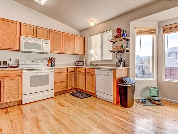 Spacious and sunlight-filled 3-bedroom home nestled on a large corner lot with a tremendous fenced yard and huge rear deck, perfect for outdoor living and entertaining! An inviting open floor plan, polished hardwood floors, vaulted ceilings, multiple living and family areas, spacious kitchen, warm tiled gas fireplace, kitchen with all appliances, master suite with an attached bath and double closets, and an excellent location near shopping and dining and showcase this exquisite home. Additional home features include central air conditioning, included washer and dryer, ceiling fans, window coverings, roof with composite shingles, and attached 2-car garage, and quick access to Woodmen Road, Marksheffel, and Powers Blvd. Offering comfort and easy living, this gem is not to be missed!