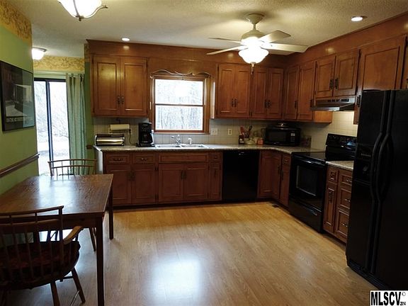 This unique property offers privacy, acreage, river frontage, in-ground pool, log cabin in the woods & convenience to Hwy 10! Well-built brick ranch has main level living room, eat-in kitchen, laundry room/pantry, master bedroom suite with private sunroom, & 2nd bedroom & bath. Basement level offers a huge den/rec room with built-ins & lots of storage, an extra room with no windows, a full bath & workshop/ storage area. Beautiful in-ground pool & spacious screened porch. Great landscaping includes perennial flower beds, flowering trees & a grape arbor. Additional structures include: a storage building with eave storage space on each side, RV-size pole shed, & 20x16 log cabin built in the woods during 2011-2013. All appliances remain including refrigerator, washer & dryer. Security system. 400 ft well. Over 250 ft of water frontage on Jacobs Fork River. Less than one hour to Charlotte airport.