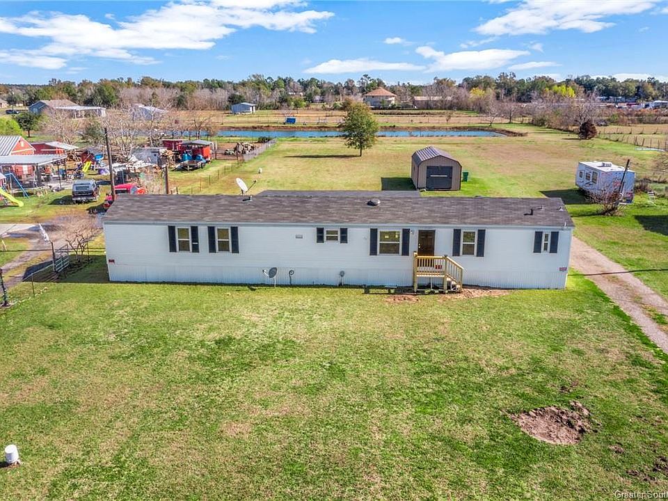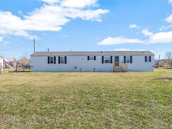 Welcome to this beautifully upgraded manufactured home nestled on a full acre in Carlyss and sitting in Flood Zone X. This three-bedroom, two-bathroom residence features recent upgrades, including new flooring and paint, along with charming wood finishes throughout. The interior exudes warmth and character, an open floor plan and a kitchen island making it a perfect blend of functional, and filled with southern charm and comfort. Step outside to discover a delightful deck, ideal for entertaining and grilling. The storage building remains with the property. There is an RV plug with septic hookup as well! Bring the animals and enjoy southern living!