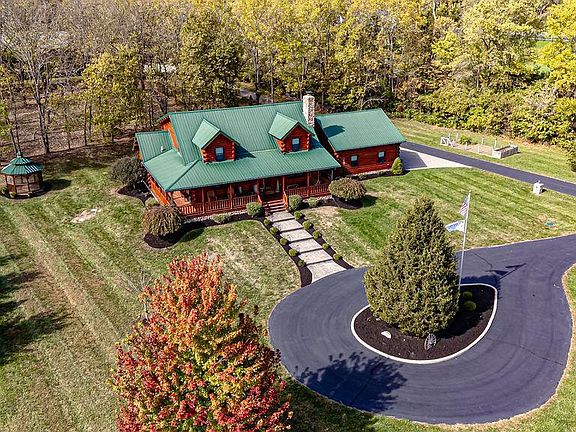 1st Time Offered-Dream Property! Drive Back The Gated Entrance to View This Stunning Custom Two-Story Log Home on 5 Acres! This beautifully Crafted Log Home offers 3 bedrooms, a spacious two story great room with woodburning fireplace, 2.5 bathrooms, dining room, a Custom Once of A Kind Kitchen. Enjoy extra living space with the finished lower level and large loft area overlooking the great room. The 1st Floor Primary suite features an adjoining full bath with heated f for convenience and comfort. A mudroom and laundry room add to the home's functionality. Step outside to your own private oasis featuring a beautiful wooded backyard, Fiberglass Inground Pool W/Auto Cover, Fire pit area + Huge 60x40 Insulated and Heated Barn For All Your Toys!. Other custom features include Whole House Generator,Barn Workshop, Large MotorHome Parking Pad w/HookUp,Pet Fence, Front Irrigation,Geothermal Heat/AC, WalkOut LL, and So Much More!! This property truly has it all!
