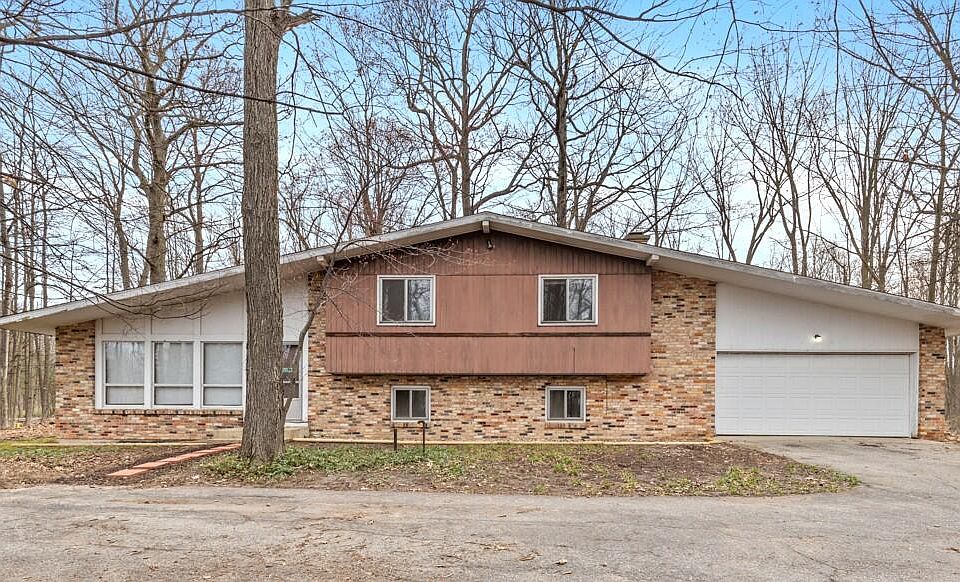 Looking for an affordable Mid-Century Modern home in Rockford with acreage to make it your own? Look no further! Built in 1966, this 4 BR, 2 Bath quad level home has 2300 sq feet of living space on 2 acres of wooded property. Main floor is light and bright with vaulted ceilings, open concept with Living room, Dining and Kitchen. Upstairs, 3 nice size bedrooms including a primary suite with walk-in closet and full bathroom. Downstairs, large family room, wood fireplace, 4th bedroom (or office), full bath, access to attached garage. In basement, mechanicals, lots of storage and laundry. Updates include: New well and septic tank. Drainfield was updated, cleared and inspected. New bathroom floors, new carpet, freshly painted. Includes Generac standby generator system, turns on when power goes out. 5 miles to downtown Rockford. Open House Saturday, May 3, 10:00am-12pm. Don't Miss!