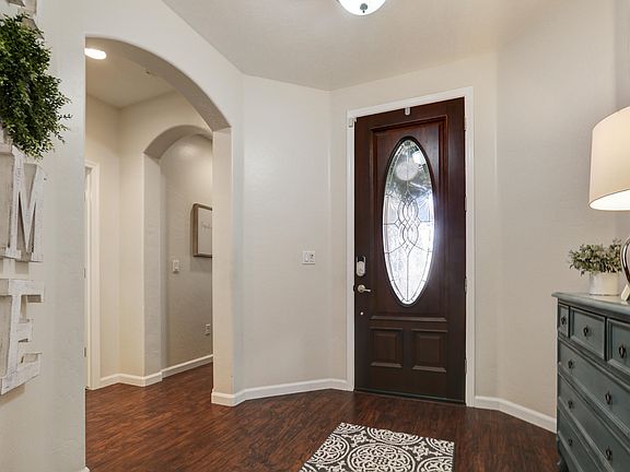Rare and spectacular find that checks all the desired boxes with a 3-car garage and RV parking in NW Visalia! The design, character and attention to detail begins at the curb and continues throughout this incredible home. Attractive details fill this beauty from alluring laminate wood floors to plantation shutters. Masterfully designed layout with 5 spacious bedrooms, 3.5 baths and large loft area with a full bedroom and bath upstairs. Deluxe open kitchen with rich cabinetry, gorgeous quartz counters, stainless appliances and custom backsplash. The crisp kitchen also features a fitting center island and is open to the great room and breakfast area. Additional dining or living space with access to tranquil courtyard. Superior master suite on main floor with a luxurious modern ensuite including a large soaking tub, custom shower and huge walk-in closet. Amazing backyard beautifully landscaped with an expansive covered patio, sparkling pool & built-in trampoline. Call today!