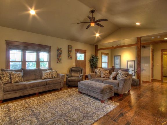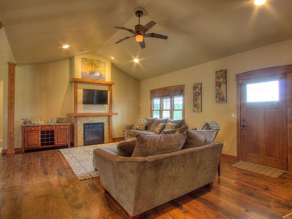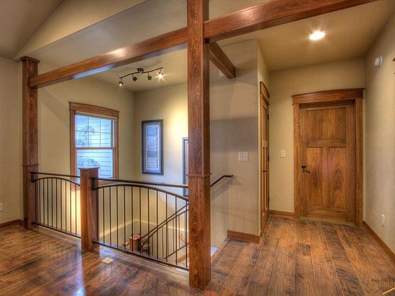 Beautiful custom built home in Red Rock Estates. You will want to call this home as soon as you pull into the driveway. Great curb appeal with the beautifully landscaped yard. When you enter the home you will be impressed with the craftsman wood work...from the window and door toppers to the wood beams and pillars. Open floor plan with hardwood floors throughout the main floor living area. Awesome master suite that is located on the opposite end of the home from the other two main floors bedrooms. The master features trayed ceiling, walk-in closet and a large bathroom with double vanity, walk-in shower with custom glass door and soaking tub. The lower level offers a nicely sized family room perfect for entertaining guests with a gas fireplace, built-in shelving and a wet bar with microwave and mini fridge included. Also offers another bedroom and bathroom. Large main floor laundry room with plenty of cabinets.