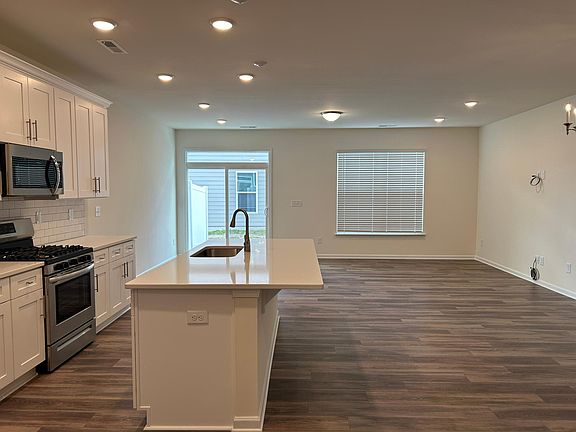 This beautiful Ashland plan has 3 bedrooms, 2.5 baths is conveniently located close to shopping. Minutes away from 485. The open main floor includes a kitchen, dining area, and spacious family room. Beautiful and durable EVP flooring runs throughout the main level. The second floor has a loft, laundry room, two secondary bedrooms, and the primary suite. The kitchen features white cabinets with crown molding, quartz counters, a ceramic tile backsplash, and stainless appliances, including a gas range. Additional 'extras' include a tray ceiling in the foyer, a drop zone, & quartz counters in all baths, and a privacy fence between rear yards. Pool & Cabana, Dog park, playground, & paved walking trail now open!