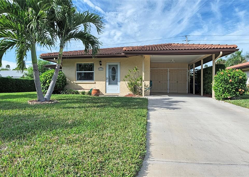 Your 2-Bedroom, 2-Bathroom Villa is situated in the sought-after and popular Cambridge Village, A 55+ maintenance free community. This free-standing Villa stands out with meticulous care. The Villa underwent a significant remodel including Kitchen, Bathrooms and new Flooring in 2015, during which all appliances were replaced. Adding to the updates, the AC system was upgraded in 2020. These Improvements contributed to the overall modern and well-maintained appeal. This beautiful villa is a must see to truly appreciate its charm. Turnkey and ready to move in. Just pack your suitcase and don on your Flip Flops to experience the welcoming atmosphere. The additional bonus room off from the kitchen is enclosed with windows and make a nice room to read a book or watch TV. Outside the bonus room is a beautiful patio to grill and get together with friends. The association is responsible to replace carport posts, maintain the individual yard lights and repair soffits and the homes are power washed and painted on the exterior every 6 years. The association's amenities include the clubhouse (kitchen, library, card room, billiards, ping pong, restrooms, community room),
