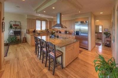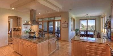6416 MUIRFIELD DR. / $739,000 Simple elegance greets you in this 5,360 square foot masterpiece complete with 4 bedrooms and 3 1/2 baths on more than three quarters of an acre located in the Estates at Red Rock. The main level boasts spring water hickory wide plank solid wood floors, a spacious kitchen with Brazilian granite countertops, solid maple cabinetry and stunning stainless appliances, an enormous master suite with gas fireplace, his and her closets, stone walk in shower, heated spa tub and exercise area. The cozy outdoor covered patio opens to the kitchen with slate decking and stainless wood burning fireplace. The lower level has three large bedrooms with walk in closets and bath suites, theater room, storage areas and a covered exterior deck with stamped concrete. The attention to detail and quality is unsurpassed in this breathtaking custom built home. MLS #107641