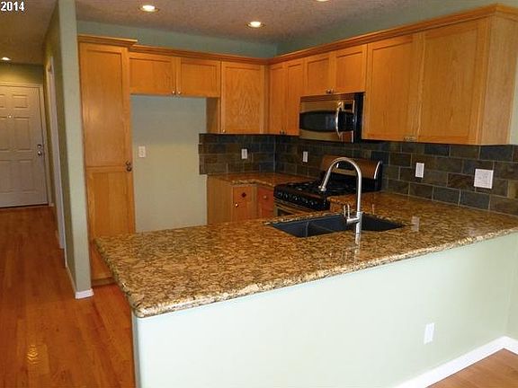 Charming home features HW floors in the entry, bath & Kitchen. Great Room floor plan with warm paint colors thru-out! Kitchen features granite counters, beautiful slate tile backsplash & gas range. Open to adjoining Dining Room and Family Room featuring a gas fireplace. Terrific upper level loft! Easy care landscape with patio, water feature & deck! Close to neighborhood park