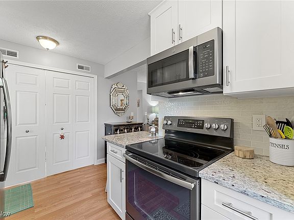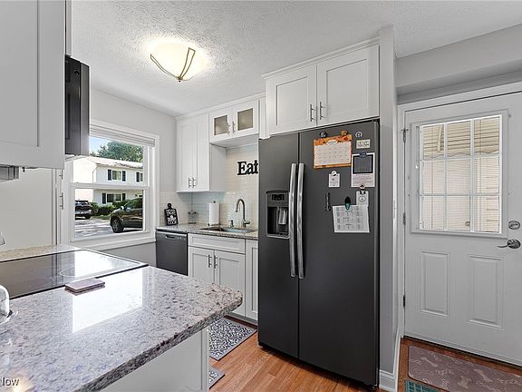 Step inside to find wood flooring flowing through the kitchen, dining, and family rooms, with plush carpeting in the bedrooms for added coziness. The completely updated kitchen (2023) shines with new shaker cabinets, granite countertops, tile backsplash, stainless steel appliances, and plenty of storage. It opens to the dining room, featuring wood floors and chandelier an inviting space for family meals or gatherings.