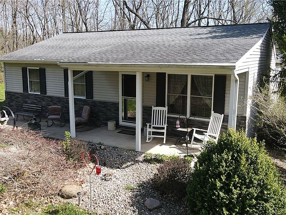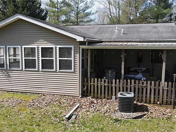 If you are looking for a ranch style,single level home in the country with wooded acreage don't hesitate. Home is located on an oil chipped road and is very well maintained. It is move in ready. Sun room and a roof over rear patio ensures year around use and view of the wooded setting. There is also a 2 car detached garage as well as a couple smaller sheds that stay. All sitting on a wildlife rich 5 acre tract.