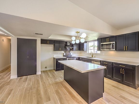 ½ acre, horse permitted property! Newly remodeled, single-story home with close access to I95 & I215! RV parking, covered patio and large backyard with shed/workspace. Home has beautiful interior finishes, floor to ceiling tiled fireplace, custom light fixtures, painted accent walls, laminate wood flooring and plush carpet throughout! Relish the spacious kitchen with garden view, new cabinets with gold accent hardware, custom tiled backsplash, stainless-steel appliances, and large island. Enjoy the fully upgraded bathrooms with high end shower systems, modern tiled showers with niches, custom hexagon tiled floors and new dual vanities with framed mirrors and lighting.