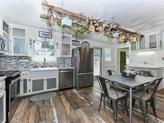 This beautiful 4-bedroom, 2-bathroom brick home in Trinity sits on just over 9 acres of picturesque land, offering plenty of space for both relaxation and recreation. The property features fenced pastures perfect for cattle or horses, along with three barns for added storage and functionality. The home boasts a spacious deck and a fenced backyard, ideal for outdoor entertaining or family gatherings. Inside, the home offers a comfortable and inviting atmosphere with a one of a kind country kitchen and a cozy woodstove in the living room. The seller is generously offering a $5,000 flooring allowance for customization. In addition to the main house, a 24’x28’ climate-controlled workshop/craft barn provides the perfect space for hobbies or projects. Both the home and the craft shop enjoy stunning views of the pond, with a breathtaking sunset view to cap off your day. This property offers the ideal blend of country living with modern amenities. Come see this beautiful property for yourself!