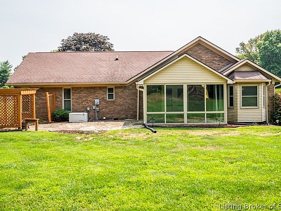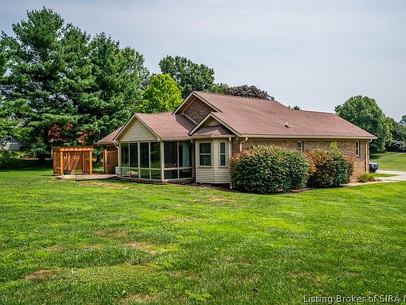 You don’t want to miss this one! Convenient access to the highways and amenities, this home is the definition of perfect location. This Brick Ranch home on almost ¾ acre in Well Established Meadow Oak Subdivision features 4 bedrooms and 2.5 baths, with a 5th non-conforming room downstairs that can be utilized for whatever purpose you need. WOW is the word for the open concept 1st floor living room/Beautiful kitchen area. The kitchen features a 9’ Quartz Counter Top Island, stainless steel farm sink, subway tile backsplash, pantry cabinet with pull out shelves and a coffee bar area. The living room features nice laminate flooring and vaulted ceiling with direct access to the awesome enclosed 3 seasons patio area, great for extra entertainment area or just for relaxation. The main level bedroom features walk-in closet and a main on-suite. 2 additional bedrooms and a main bathroom finish out the main level. This is a true 4 bedroom, the current owners updated the downstairs bedroom with egress window well to make it a fully approved bedroom. The basement is a wide open concept, great for entertaining, with a family room area, space for a game room and a wet bar. There is also a ½ bath in the 5th room that was used for a playroom. Treed Peaceful/private backyard with stone patio great for cook outs and a shed for additional storage. Home is in award winning Floyd County School District. Enjoy peace of mind w/1 yr America Preferred Home Warranty. Call today to request a showing.