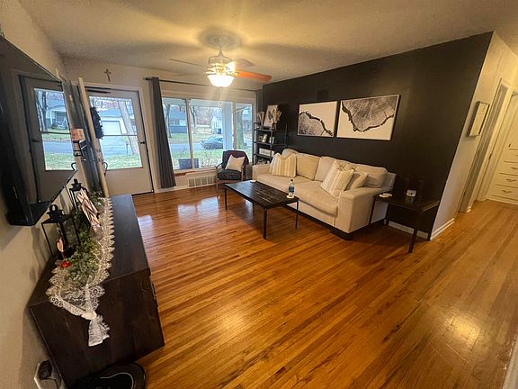 Tile flooring in kitchen, dining room, and both bathrooms. Gourgeous hardwood throughout. Back yard has mature trees and privacy fence. Don't miss this one, it's a must see. Call today for your private tour.