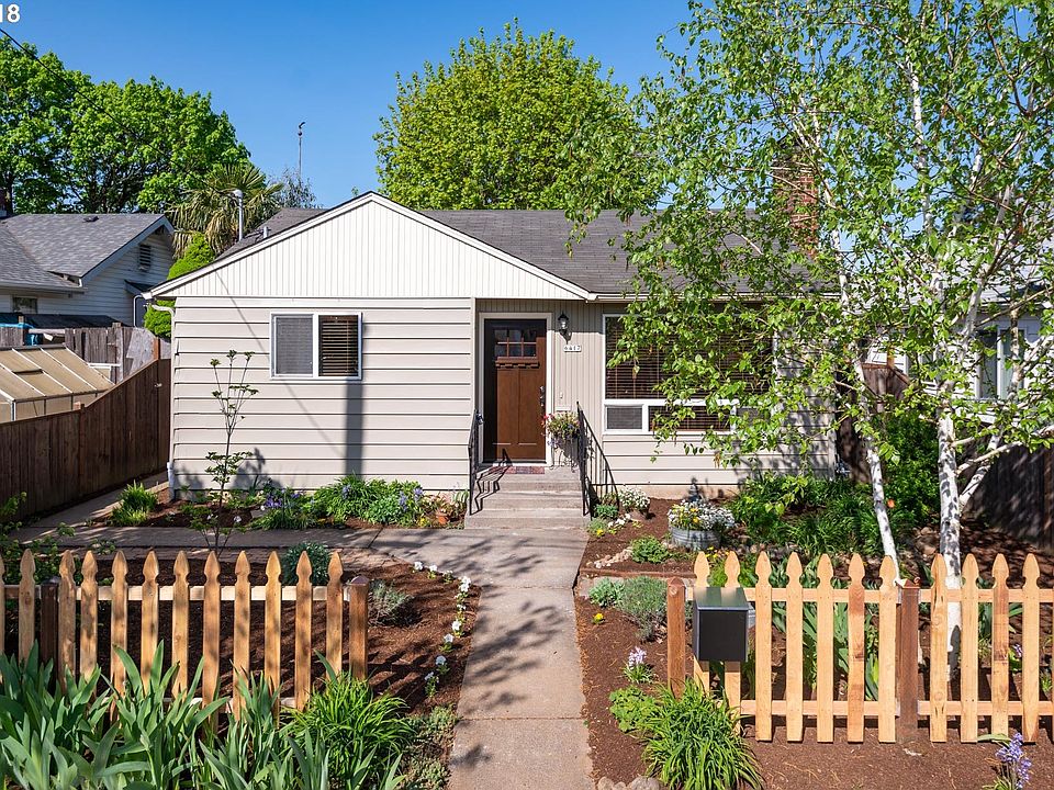 HOT SE PDX location! **OPEN SUNDAY 4/29 1-3pm** Remodeled bungalow w/alley access to detached garage-ADU potential! Three bedrooms, hardwood floors, remodeled bathroom & kitchen with stunning granite and tile! There's a finished basement with a bonus/family room as well as a real backyard for a garden or chickens! Minutes from Woodstock shops, Mt Scott Park/pool, Cartlandia. It's everything you are looking for!