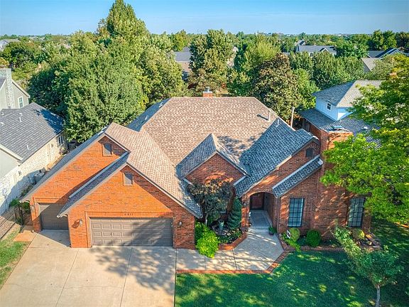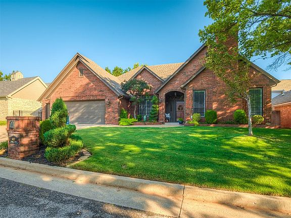 Absolutely stunning 4 bed, 3 bath home is perched in Northwest Oklahoma City just minutes from the Kilpatrick Turnpike, Hefner Parkway, and Mercy hospital. Immediately you will notice the gorgeous landscaping that was recently updated. Through the grand front entry you're welcomed with the comfort of being at home. To the right of the front entry is the formal living room with an elegantly updated fireplace, plantation shutters, and recessed lighting that sits opposite the formal dining room, both of which are quite spacious. Carry on through a truly remarkable kitchen boasting updated paint, lighting, appliances, gas cooktop, granite countertops, and more which sits open to the second dining and living room or family room. Whether it's family and friends on a warm summer evening gathering for dinner or a quiet and cozy night by the updated stacked stone fireplace this is where you want to be. Behind the kitchen is the laundry room, a newly remodeled full bath and secondary bedroom that is currently being used as an office. Thoughtfully located the generous primary suite sits off the second living room and is warm and open with high vaulted ceilings. The swanky remodeled ensuite bath has separate vanities, walk in shower and garden tub, and leads to an amazingly spacious walk-in closet. Up the stairs you will find 2 accommodating secondary bedrooms each with large closets and a full hall bathroom. This immaculately maintained home has tons of storage including a walk in attic space upstairs with a convenient Versalift and huge closet under the stairs! The sizable backyard is like having your own personal retreat from the stresses of everyday life. It backs up to a creek and the mature trees offer peace and serenity. You will love entertaining and making memories with all of your people in this perfectly charming outdoor space.