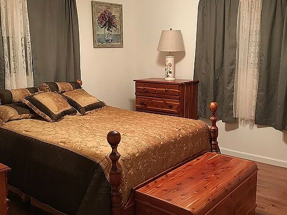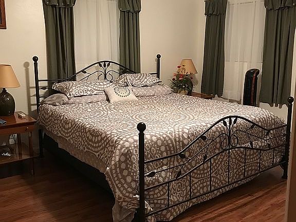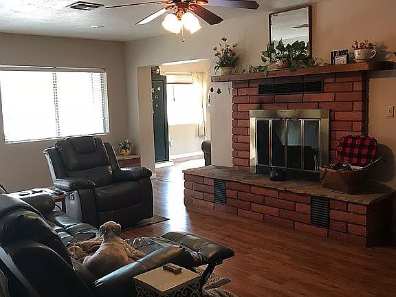Well maintained & move-in ready! This single level block home features an open greatroom with masonry wood-burning fireplace plus a wood stove. Remodeled eat-in kitchen offers granite countertops & upgraded cabinets. Generous-sized master bedroom with dual closets & en-suite bath. Huge laundry room has lots of storage. Light-filled den/office or potential 3rd bedroom. Fantastic 18x22 covered patio with recessed LED lighting & rustic ceiling fans/lights extends the outdoor living area perfect for summertime BBQ''s & backyard fun. Quaint covered front porch & walkway to park like ''''secret garden''''. Fenced dog run, wood privacy fence, paved driveway with ample parking areas, 1-car garage, storage shed.