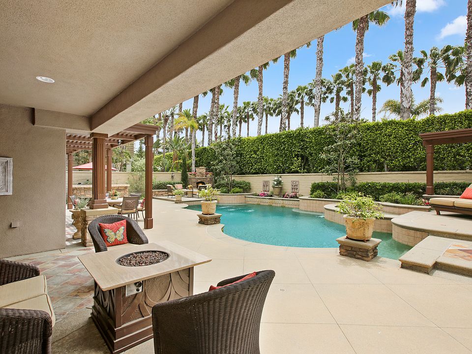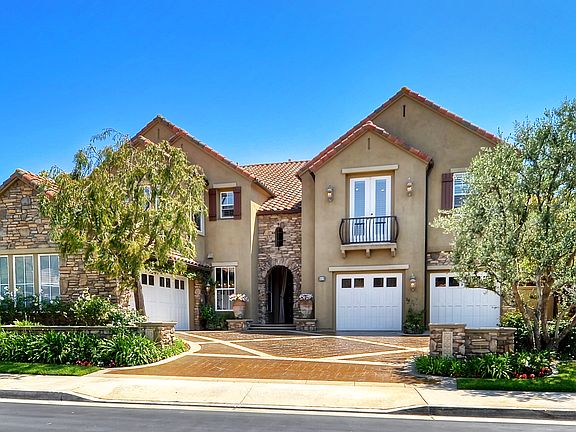 Discover the ultimate coastal living in this exclusive guard gated community, The Bluffs. A home has not sold on this entry row prime location since 2002, truly a unique opportunity. Perched above adjacent neighbors, this Mediterranean-style residence offers unparalleled privacy. Flexible floor plan is comprised of 5 en-suite bedrooms, (5th bedroom is being used as a game/entertainment room), his and her separate offices, 3 fireplaces, and 4+ car garage. Exquisite private lot accented by a pool and spa, 3-hole putting green, secluded side yards, stone fireplace, and outdoor entertaining areas. Energy efficient features include tankless water heater, turf, solar panels, LED specialized lighting, insulation, energy efficient pool pump, and wrapped pipes throughout for sound control. EXCLUSIVE OFFERING, FIRST TIME ON THE MARKET, ORIGINAL OWNER.
