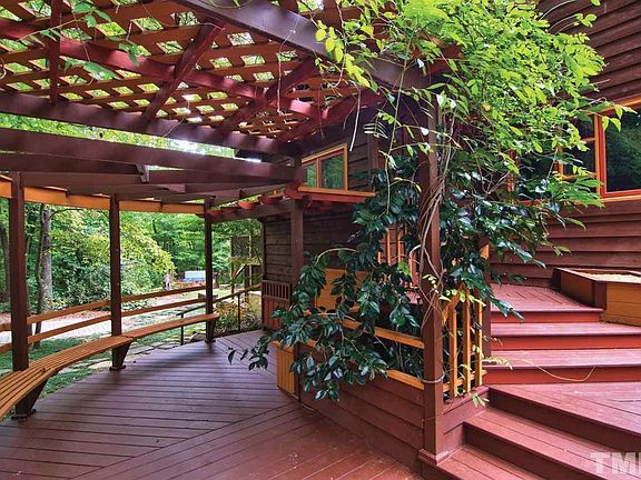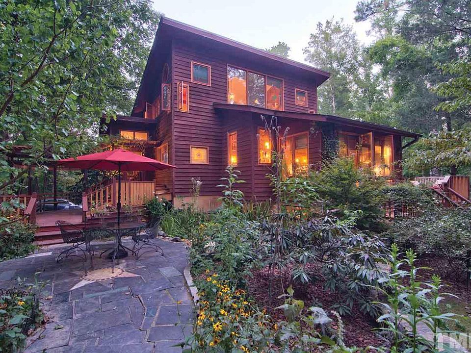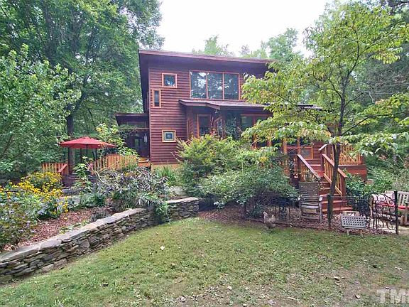 Style. Function. Magic. Masterfully designed home on nearly 8 wooded acres just minutes from downtown Chapel Hill. The open floorplan, chef's kitchen, and ample decking/patios/porches combine to create the perfect retreat from the busy life. In addition to the multiple outbuildings, the outdoor spaces are designed for entertaining, sports, gathering, play, and relaxing. Really a "Must See" property.