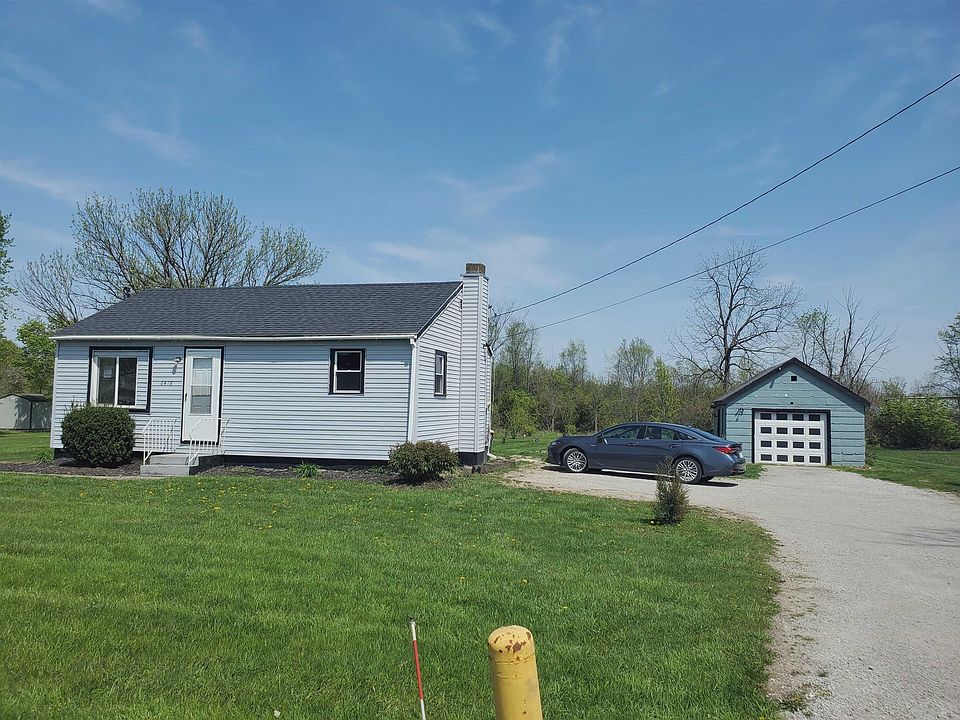 Cozy 2 bedroom ranch style home on full basement located on a large .73 acre setting, this property is currently zoned R-1 with the possibility of commercial or industrial potential in the future. Recent updates include new shingles and sheathing (late April 2023), new windows in southwest bedroom, 2 new storm doors and paint. The large 1 car detached garage needs work. This very affordable property is available for immediate possession. Inspections welcomed but property is being sold "AS IS".