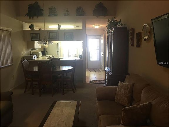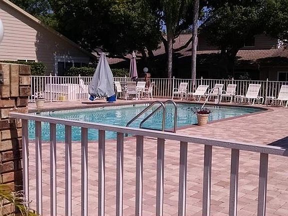 Enjoy maintenance free living. Deed restricted, The low $120 monthly fees covers roof & exterior paint, trash pickup, community heated pool, clubhouse, lawn and shrub trimming as well as exterior pest control. The A/C was replaced in 2011 and the roof was replaced about 6-7 years ago. Sought after 55+ community convenient to shopping, medical and downtown. This end unit is being sold furnished. Plenty of storage in the one car attached garage with access to the attic. Master bedroom has walk in closets and bath with walk in shower. The second bedroom is only steps away to full bath with tub and shower. Lanai has heat and air but is not included in the square footage. NO DOGS ALLOWED. Room sizes are approximate.