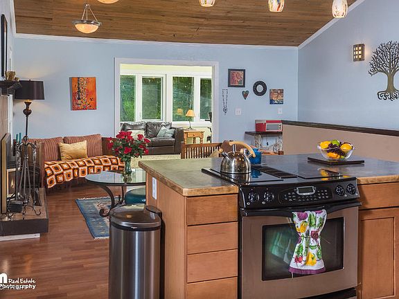 You will love this quiet hillside ranch home with a walkout basement. Open floor plan, remodeled kitchen, laminate floors, vaulted tongue & groove ceilings, woodstove insert, sun room, large deck, huge fenced yard, and more! This lives like a ranch home with 3 bedrooms and 1.75 baths up, 2 bedrooms and .75 bath down. Downstairs could easily be a M-in-law apartment. Quad pane windows make it quiet.