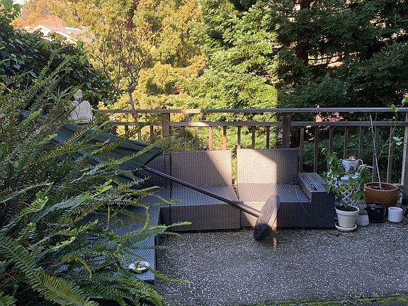 Unfurnished in-law with separate floor and separate entrance and separate heating. Privacy and quiet surrounded by redwoods-light, airy, private enclosed deck with outdoor furniture provided. living room has wood burning fireplace and view. kitchen has all amenities- stainless sink, stove, microwave, dishwasher, granite counters, lots of counter space, with bar stools provided. small office or pantry. private bath (shower over tub). generous bedroom. laundry on premises. plenty of available on-street parking (park on either side of the street only 3 houses face the street). lots of storage. . above broadway - easy walk down to bart but uphill walk back from bart could be challenging. near shopping-college ave, elmwood, Temescal, little Korea town, 51stXBroadway shopping center. near 5 hospitals- kaiser, alta bates, children's, near on/off ramp to hwy 24. no problems receiving amazon. two blocks to college prep. I live in floor above in-law with separate entrance and bedrooms are two flights above unit. to view the property please notify me by email at least 24 hours before you want to see the property of what weekday between 10:00 to 1:30 pm or what time on weekends between 10 to 4 you will be available . please make sure that I respond. bring hard copy of application, credit report, employment contact information, former landlord contact. contract will start 8/1 last's month rent due at signing. monthly share of utilities to include utility penalties (if any-we have never had a use penalty). lease is for a year. No cats but one small, neutered, well- trained, quiet dog is possible- provided Tennant purchases liability insurance policy with landlord as beneficiary and pays additional monthly fee of $200 . pet must be in possession of Tennant at time of application. there is a stiff penalty if an animal is brought on premises after the signing with a higher additional monthly fee. Tennant must accept full responsibility for actions of animal and hold landlord blameless. irresponsible entitled animal owners turn into nightmares.