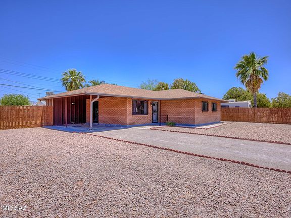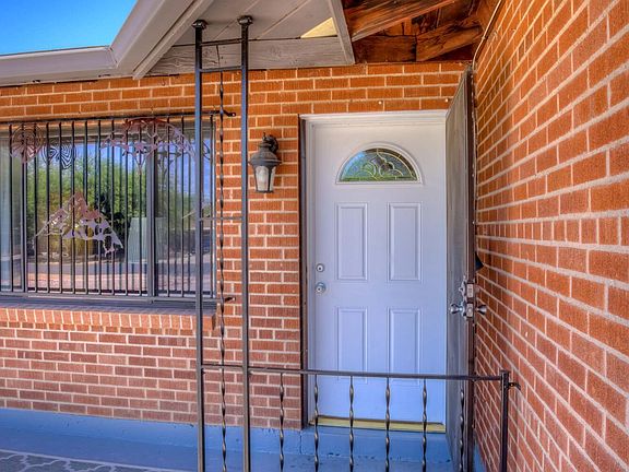 This classic red brick 3-bdm, 2-bath features a modern aesthetic with tile floors throughout. Recent updates include a fully renovated kitchen complete with modern appliances & water filter system, stylish ceiling fans, window coverings, and on-trend paint that gives the space a fresh, inviting feel. Both baths improved with new toilets & vanities. New roof in 2022, updated electrical panel & new sewer cleanout ensures peace of mind. Step outside into relaxation featuring hot tub, full-length covered patio, a private backyard enclosed by 6 ft fence & storage shed. Enjoy low-care landscaping & let your imagination run wild with large back yard great for large dogs. RV parking. Convenient to Davis Monthan.
