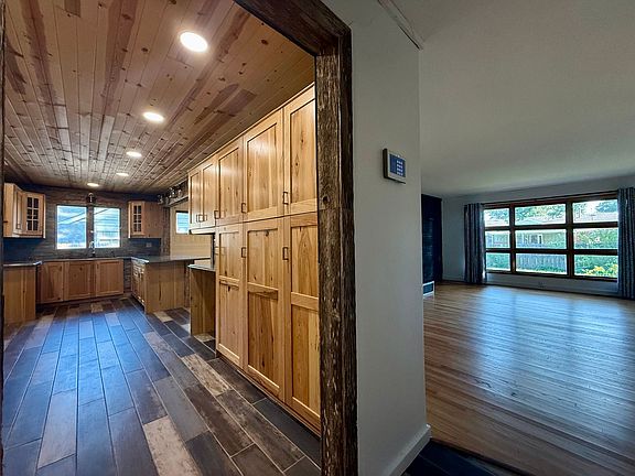 * Living Space: Open living/dining combo with two-way wood-burning fireplace