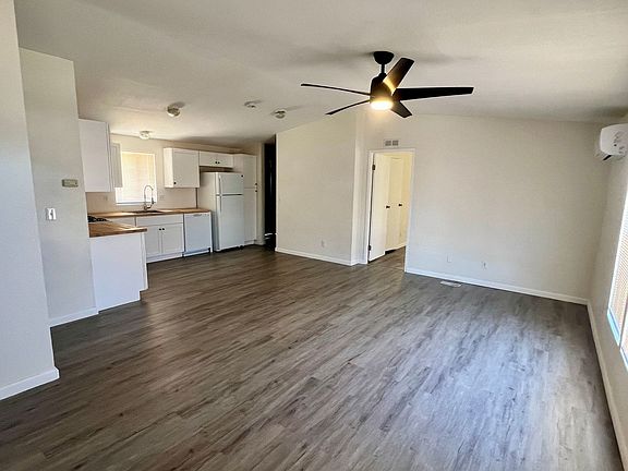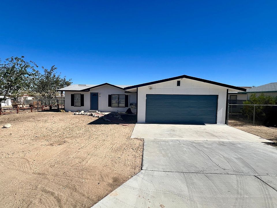 A beautifully remodeled 3-bedroom, 2-bath manufactured home is now available for rent in the peaceful area of 29 Palms, CA (92277). This spacious home features an open-concept living area filled with natural light, complemented by updated wood laminate flooring and high ceilings with a ceiling fan. The newly renovated kitchen boasts white shaker cabinets, butcher block countertops, and brand-new stainless steel appliances, including a gas oven, dishwasher, and refrigerator. Off the kitchen, you'll find hookups for both electric and gas dryers for added convenience. Each bedroom is equipped with a split AC system, ensuring comfort throughout the home. The primary bedroom includes a ceiling fan, en suite bathroom with a full tub enclosure, walk-in closet, and updated fixtures. The second bedroom is generously sized, while the first bedroom offers a cozy yet functional space with updated blinds. Both bathrooms have been upgraded with new enclosures, toilets, and cabinets. The fully fenced backyard is perfect for outdoor relaxation or entertaining, and the home includes a detached garage for additional storage or parking. Located near Joshua Tree National Park, local schools, shopping, dining, and with easy access to the Marine Corps Air Ground Combat Center (MCAGCC), this home is ideal for those seeking a quiet, connected lifestyle. Don't miss out on this great opportunitycontact us today to schedule a viewing!