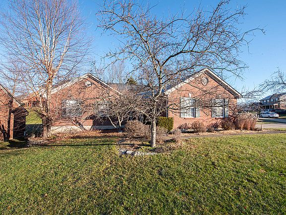 Desirable 3 beds, 2.5 bath full brick, ranch-style home with finished basement. Property features a spacious living room with vaulted ceilings & gas fireplace. The kitchen comes with stainless steel appliances with walk out to the back yard. Enjoy the comfort of an attached bathroom and walk-in closet in the primary bedroom. A fully finished basement offers extra storage space, a large mounted TV that conveys with the home, wet bar and full-sized refrigerator, perfect for entertaining guests. There is an additional room in the basement for a home office. Large yard with patio on a cul-de-sac street & short walk to the community pool.