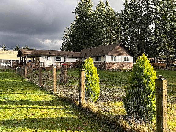 Rambler with a covered back porch, wired for generator, bath off master, covered BBQ area , RV parking for a class A and 7 cars in the carport. 220 plug in for the RV in the carport. Car lift in middle bay of the shop. Kitchen island, double oven, free standing propane stove and wall heat in dining room, propane insert in living room. New roof on house in 2020. New roof on the shop in 2014 . Fully fenced yard. 2 carports both 30x40. For a viewing contact SHAWN 253-332-7065