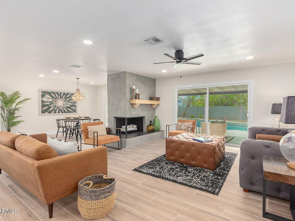 This single-story 3 bed, 2 bath home nestled at the end of a cul-de-sac is the one! Enter the beautifully remodeled home to soaring ceilings in the great room and get cozy by the fire. The open kitchen features center island with breakfast bar, stainless appliances, Quartz counters, pantry, tile backsplash, recessed lighting, and breakfast nook. Primary suite remodel includes new cabinetry, Quartz counters, tiled walk-in shower, and hexagon marble flooring. Spacious backyard with covered patio and refinished pool is the perfect place to relax or play and enjoy the Arizona lifestyle. Conveniently located near freeways for an easy commute, numerous shopping, dining, and entertainment experiences, local parks, and golf courses. Welcome home!
