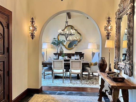 This custom Mediterranean home is situated on the 18th green of the East Oak Tree Golf Course. It sits on a 3/4 acre lot with lush fescue lawn and gorgeous mature trees and landscaping. Every detail of this home is special and there is not another home like it! There are too many features to list here (see supplement for full details), but the house is brimming with custom, imported tiles, carved mantles (6 fireplaces in all), gorgeous light fixtures, high-end appliances, multiple sets of custom-made French Doors, imported Saltillo tile, hand-scraped hard-wood flooring and much more. The floorplan takes full advantage of the stunning views, designed around a large, 1100 sq. ft. courtyard with a central tiered fountain from Santa Fe. The patio also features an outdoor fireplace with covered seating area and a swimming pool with wading-shelf. The home offers 3 beautiful bedrooms, all with en-suite baths and walk-in closets. The 3-car garage is finished out with epoxy flooring and extensive built in cabinetry.